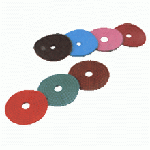 ADVANTAGES: 1. The series of diamond discs are made of six grit grades, they are used in variety steps: shaping, lapping and polishing. 2. The grinding material has lattice-point polyaddtion rovngement make products have the features of strong grinding force quality, high elasticity and hard to load at a time, it can extend the product usage life. 3. The product back uses an automatic velcro or an adhesive design settled, this makes products easy to change at the time of operating. 4. It is in use for grinding operation of marble surface and edging angle. |